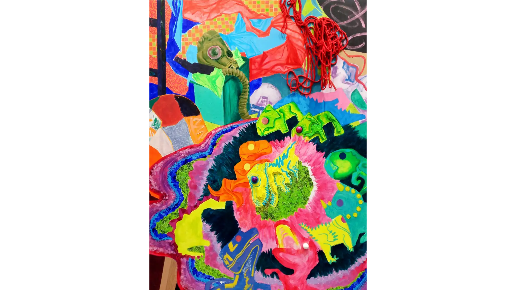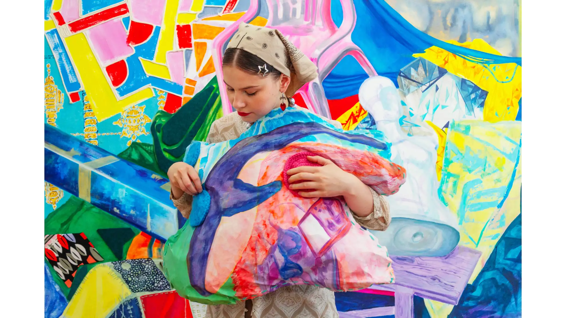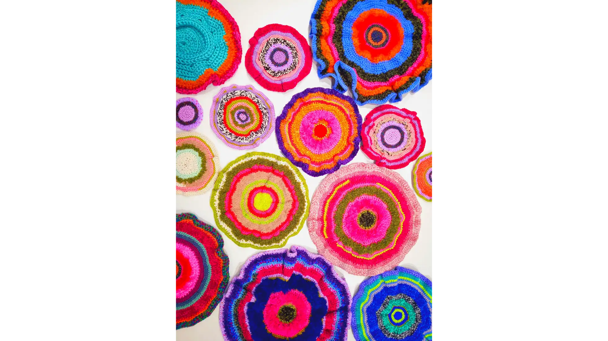 Ekspozycja składa się z trzech obrazów, łączących techniki malarskie, jak akryl i olej, z elementami tekstylnymi. Ich integralną częścią są koliste, wypukłe formy wykonane na szydełku, które tworzą organicznie rozszerzającą się strukturę. Przestrzeń dopełniają poduszki obciążeniowe, stworzone z fragmentów malowanych obrazów i wzbogacone szydełkowymi detalami, które odpowiadają na indywidualne potrzeby sensoryczne zwiedzających. Uzupełnieniem instalacji jest pokój wyciszeń, w którego centrum znajduje się styropianowa muszla, do której wnętrza można wejść i odpocząć. Otaczają ją miękkie, materiałowe formy, po których można chodzić, doświadczając sztuki nie tylko zmysłem dotyku, lecz również kinestetycznym.
