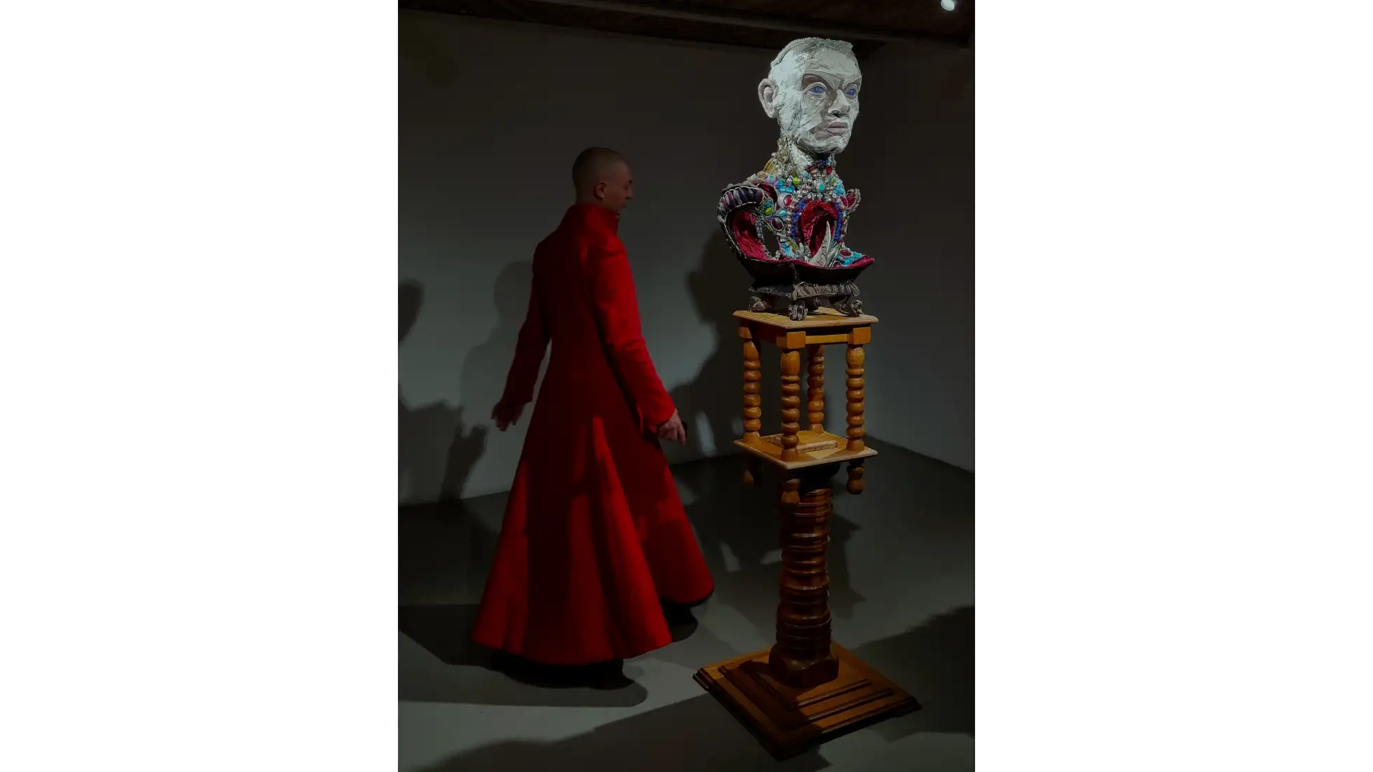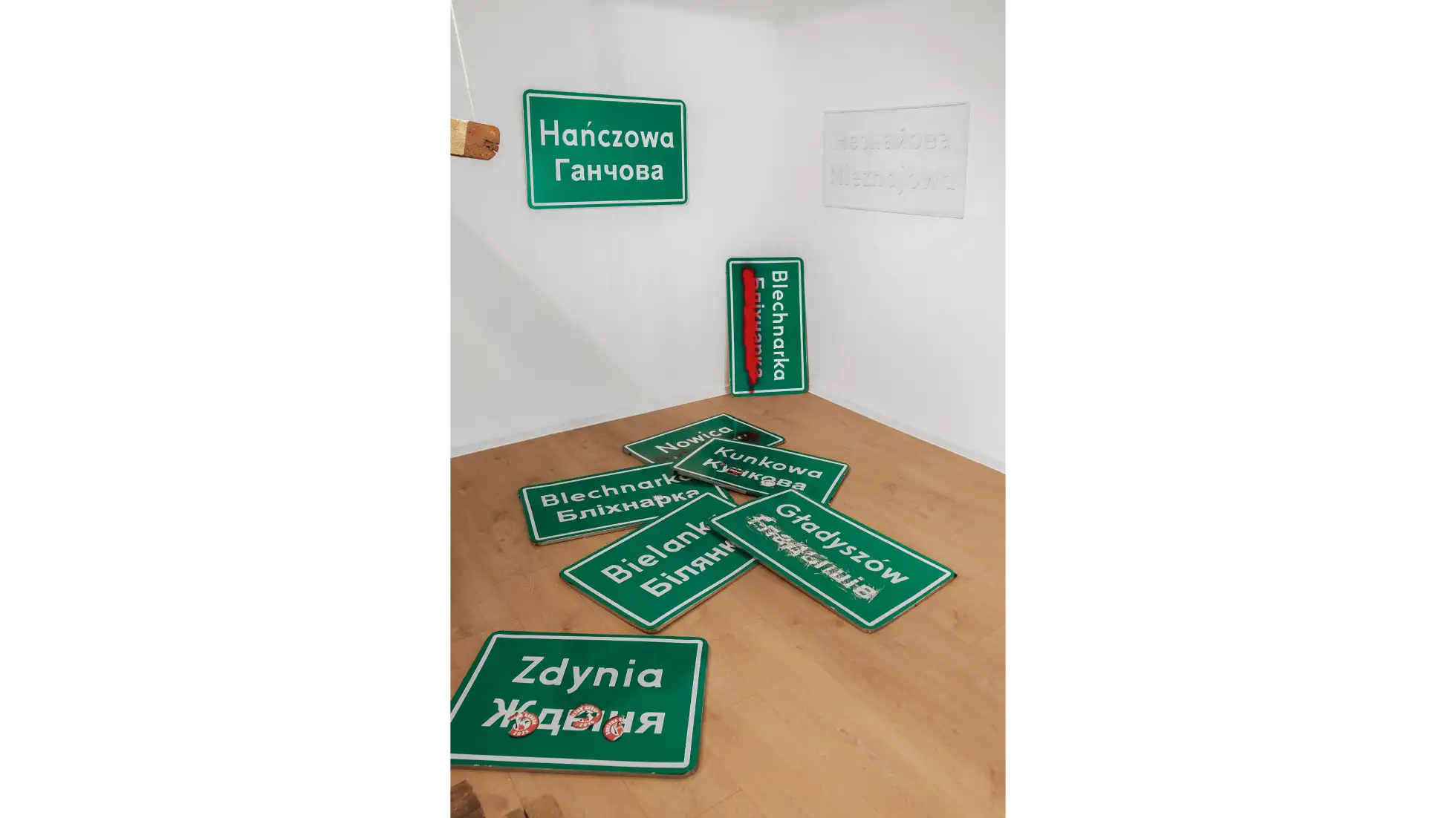 Wystawa rozgrywa się na trzech poziomach galerii, płynnie przechodząc między pejzażem wsi, miasta i fikcyjnej sceny filmowej. Obiekty i aranżacje odwołują się do dekoracji halloweenowych, zapomnianych ulic czy plakatów filmowych, tworząc środowisko balansujące między groteską, nostalgią i grozą.