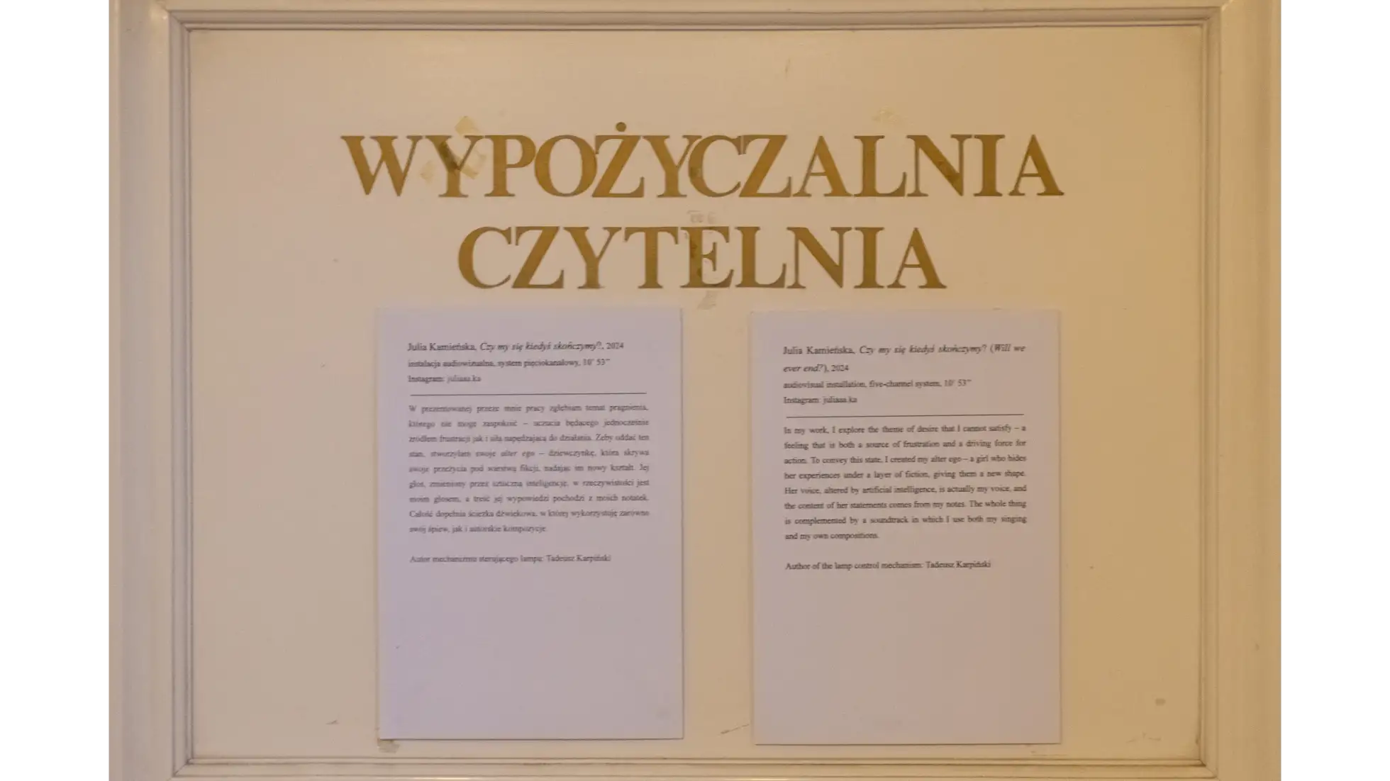 Emily 2 jest próbą uchwycenia momentu przejścia – między fikcją a rzeczywistością, wspomnieniem a halucynacją. To fikcyjny film, którego nie można obejrzeć, ale którego echo i atmosfera wciąż rezonują w przestrzeni wystawy.